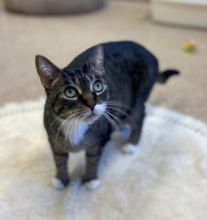 Cats up for adoption at Lost Dogs Home. Kittens for adoption in Melbourne Region VIC. Female Dark Grey Tabby DSH Cat.